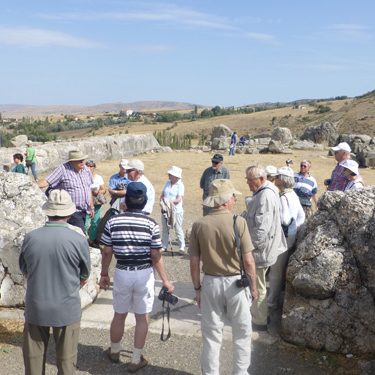 Die Gruppe wurde begleitet von PD Dr. Andreas Schachner, DAI-Istanbul, seit 2006 Leiter der Grabungsstätte Hattuscha, Autor des Buches „Auf der Suche nach dem sagenhaften Großreich der Hethiter“ und ausgewiesener Kenner der Vor- und Frühgeschichte der Menschheit. Die von Ankara nach Antalya geplante Reise führte zunächst in die westlich von Ankara gelegene phrygische Hauptstadt Gordion mit dem wohl fälschlicherweise dem König Midas zugeschriebenen mächtigen und begehbaren Tumulus aus dem 8. vorchristlichen Jahrhundert. Schon am 2. Reisetag erreichte die Gruppe Bogasköy mit Blick auf die an einem Berghang gelegene hethitische Hauptstadt mit riesigen Ausmaßen und mächtigen, z.T. rekonstruierten Stadtmauern, die zur Hochzeit des Hethiterreiches eher der Machtdemonstration als der Verteidigung dienten.