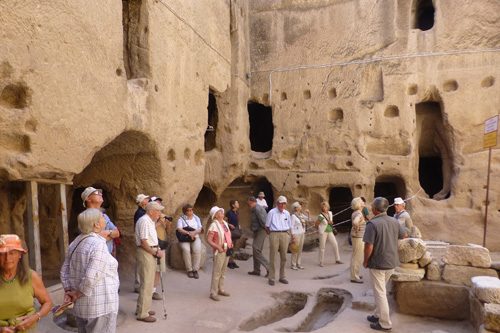Dr. Schachner machte die Gruppe darauf aufmerksam, dass die Türkei als Durchgangsgebiet der frühen Menschen auf dem Weg nach Europa und Asien überaus reich an vor- und frühgeschichtlichen Zeugnissen ist, die zum großen Teil noch der Erforschung harren. Bis zu 10.000 Jahre alte Siedlungsplätze, die die Gruppe besuchen konnte, wie Alacahüyük und Catalhüyük ebenso wie Kültepe, die Stadt aus der Karumzeit, der Zeit der assyrischen Händlerdynastien, werden heute in der Türkei als Zeugnisse des Nationalverständnisses und der nationalen Identität gefeiert und sind in den hervorragend organisierten Museen des Landes wie Ankara, Corum, Kayseri, Konya und vor allem auch Antalya sehr eindrucksvoll dokumentiert. Auf dem Weg nach Süden bewunderte die Gruppe die wunderbaren Felsformationen und kulturellen Schönheiten Kappadokiens – einige Teilnehmer wagten gar eine Ballonfahrt – und besuchte Burgen, Moscheen und andere Bauten in den ehemaligen Seldschukenhochburgen Nigde und Konya. Ein besonderes Erlebnis war in Begleitung des Imams der Besuch der schönsten Holzmoschee Anatoliens, der Esrefoglu-Moschee in Beysehir mit einem Wald von 48 Holzsäulen, auf denen das Dach ruht.